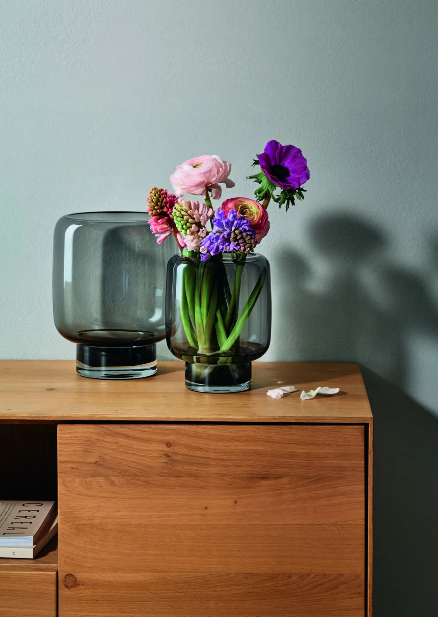 Den mundblæste glasproduktion sikrer exceptionel klarhed og subtil variation i hvert stykke. Den cylindriske form giver en alsidig anvendelse, hvad enten produktet bruges som lysholder eller elegant vase til friske blomster. Philippi – Vejle votive S fremviser det bedste inden for moderne glaskunst.