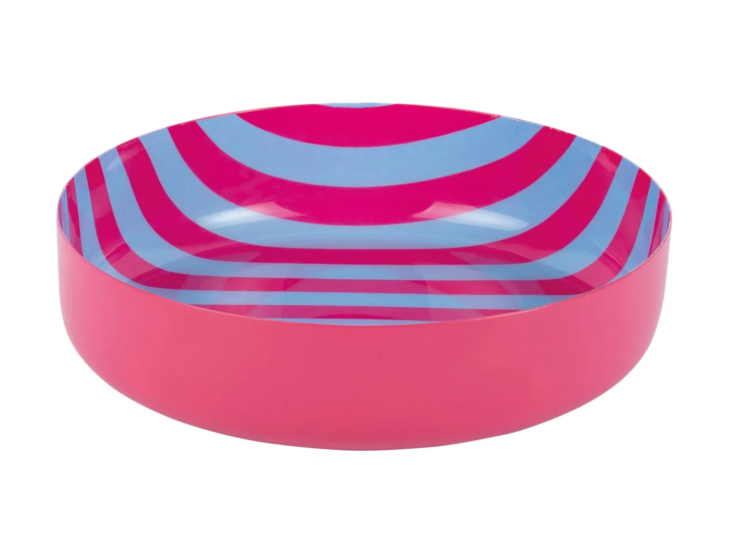 Med en diameter på 18,5 cm er skålen praktisk til servering af snacks, salater eller frugt, mens højden på 4,5 cm giver tilstrækkelig kapacitet. Jernmaterialet sikrer holdbarhed, og det lyse pink udtryk passer ind i moderne indretninger. Det stribede mønster indvendigt skaber et iøjnefaldende look, når skålen er i brug.