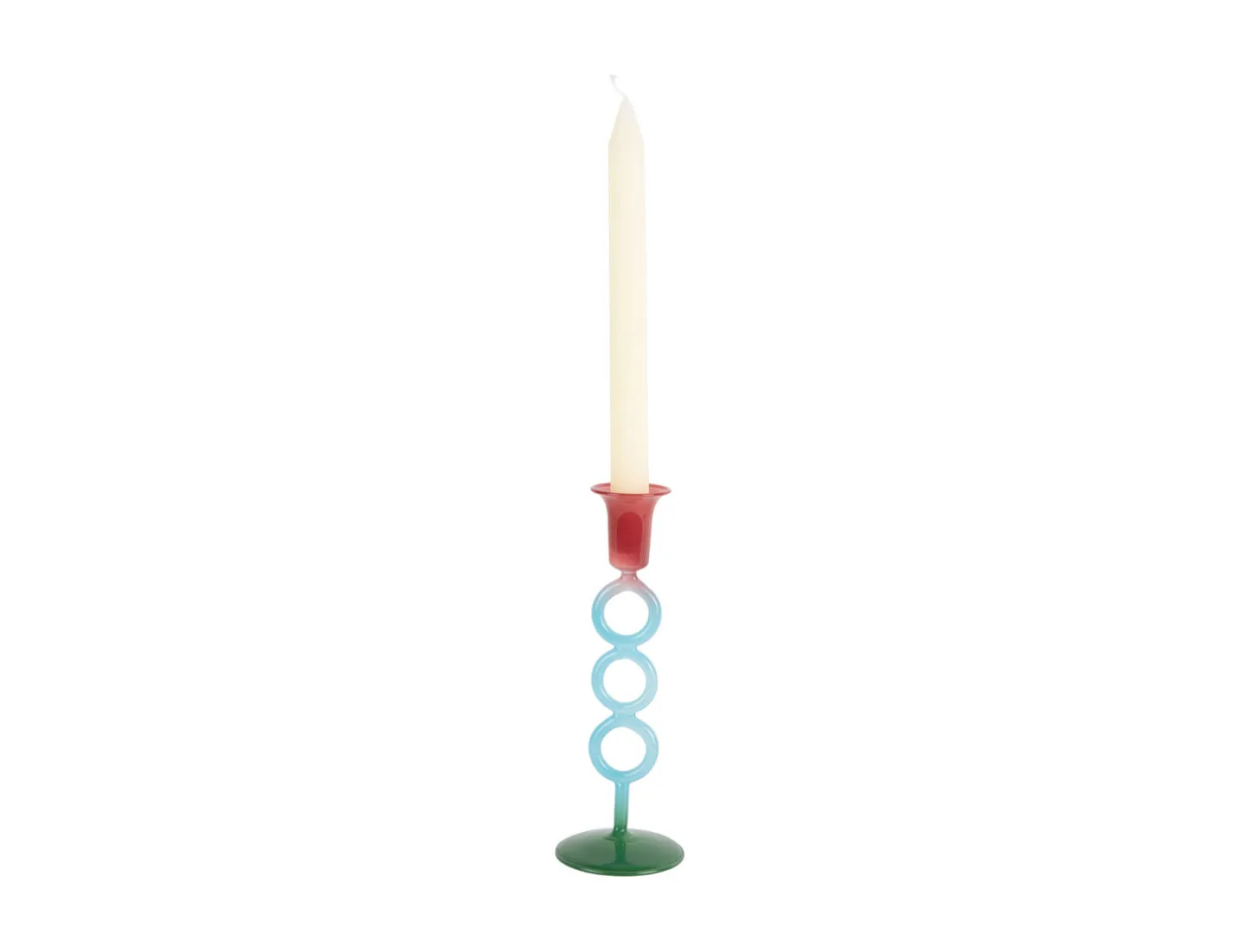 Anillo Vivo lysestagen er håndværksmæssigt fremstillet af glas, et materiale der reflekterer lyset og skaber en stemningsfuld atmosfære i dit hjem. Farvepaletten kombinerer multicolor nuancer med varmt lilla, grønt og blåt, hvilket giver en kunstnerisk karakter til din indretning.