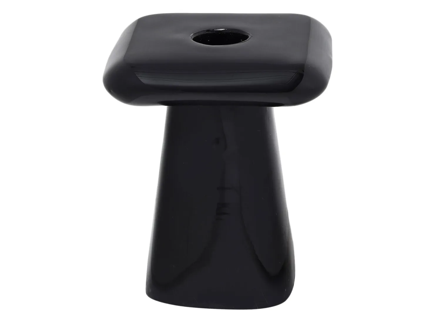 Denne lysestage fra Present Time er fremstillet i jern med en blank sort finish. Med en højde på 11,5 cm passer den ind i forskellige indretninger, fra vindueskarme til hylder. Det geometriske design med kvadratisk top og konisk base giver et moderne udtryk.