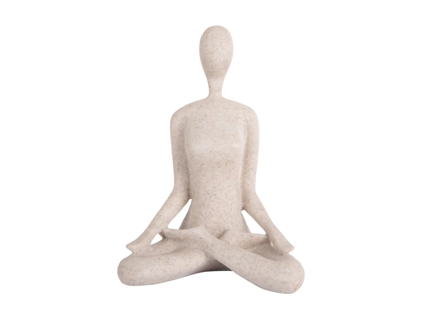 Denne statue forestiller en figur i meditationsstilling og er lavet af polyresin – et holdbart materiale, der modstår skader og holder sin form over tid. Med sine 21 cm i højden fylder den tilstrækkeligt til at skabe tilstedeværelse uden at dominere.