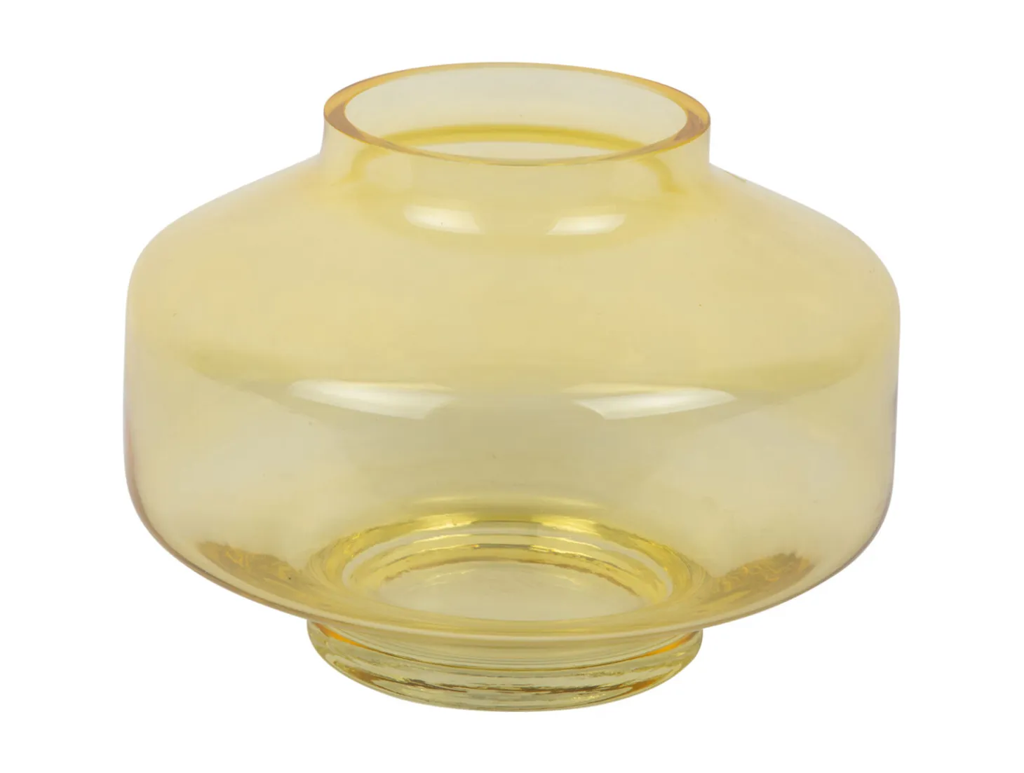Denne vase i mango-gul glas tilføjer et friskt farveaccent til dit hjem. Glasmaterialet giver en gennemsigtig finish, der fanger lyset og fremhæver den livlige gule tone. Med en bred, afrundet form og en smal åbning får du en vase, der fungerer både med og uden blomster.