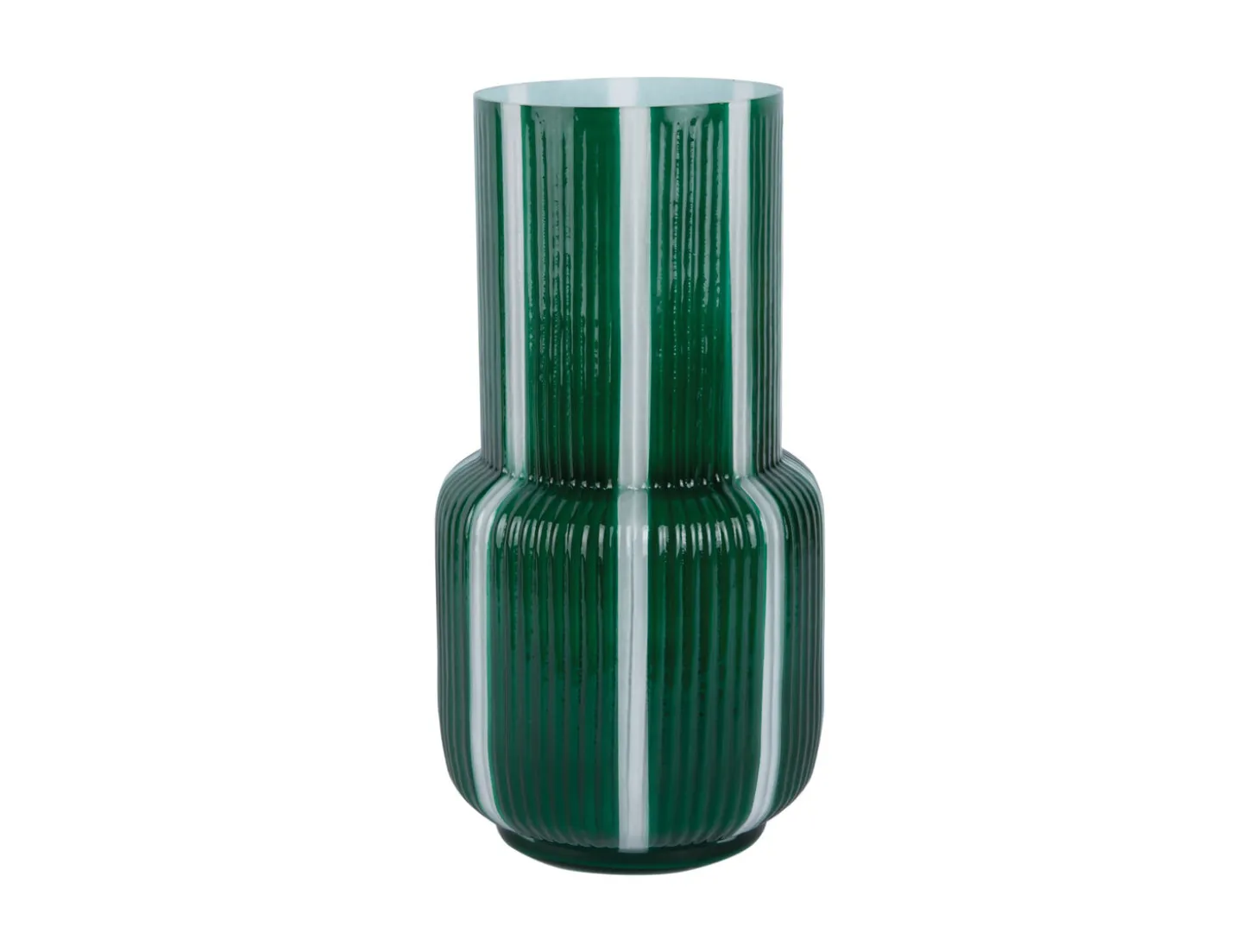 Denne vase bringer farve ind i dit hjem med sin grønne tone og lodrette hvide striber. Designet kombinerer retroæstetik med moderne funktionalitet, hvilket gør den til et iøjnefaldende element i din indretning. Lavet af glas får vasen et holdbart og klassisk udtryk.