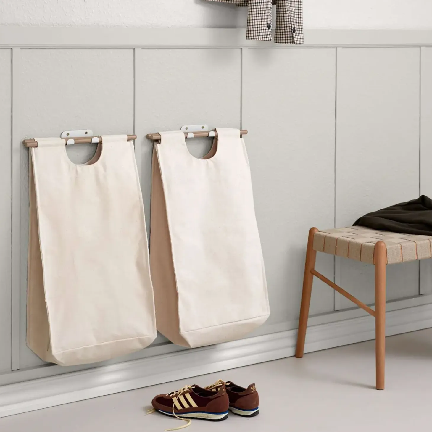 Denne alsidige opbevaringsløsning er perfekt til at sortere vasketøj, men kan også bruges til opbevaring af legetøj, pantflasker eller andre småting. Den er ideel til brug i entréen, køkkenet, badeværelset eller børneværelset, hvor den forener funktionalitet og æstetik.