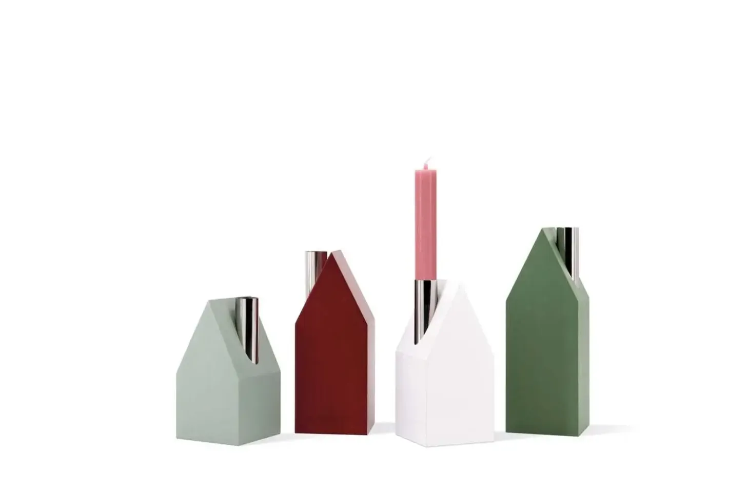- Sæt med fire husformede lysestager