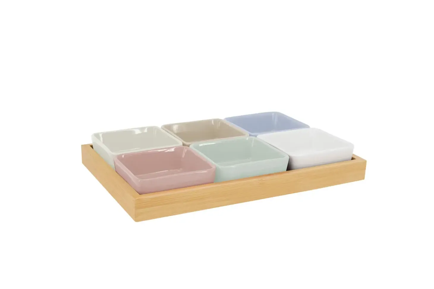 Giv dine serveringer et festligt løft med dette skålesæt fra Remember. Med seks firkantede skåle i forskellige farver og en elegant træbakke får du alt, hvad du behøver for at præsentere dine lækkerier med flair. Dette alsidige sæt er perfekt til enhver anledning, fra uformelle familiemiddage til elegante cocktailpartyer.