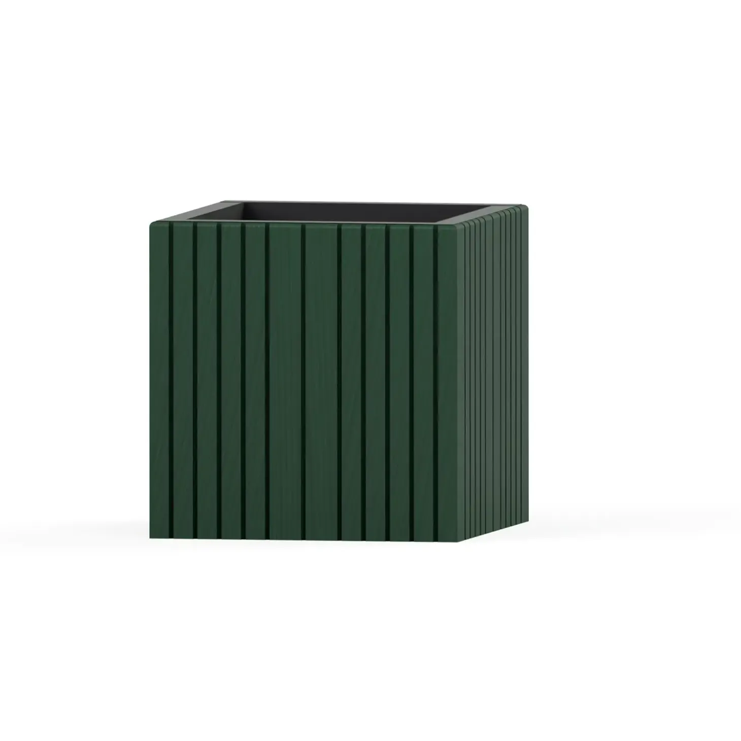 Denne kubiske plantekasse i Forest Green har et vertikalt ribbet design med gennemtænkte detaljer. Med et indbygget selvvandingssystem og robuste materialer passer den både til receptionsområdet og hjemmet.