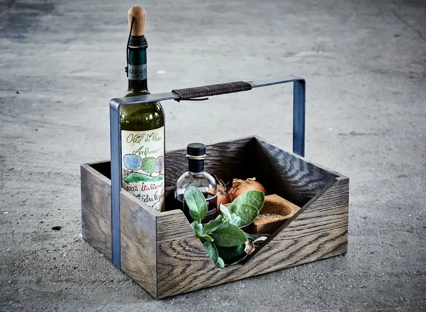 Denne fine Carrie box i mørk eg fra the_oak_men, er super som magasinholder, men egner sig bestemt også som picnic kurv, til opbevaring af olier og andre madingredienser i køkkenet, samt creme, parfumer m.m. på badeværelset. Kun fantasien sætter grænser – Fås også i lys eg