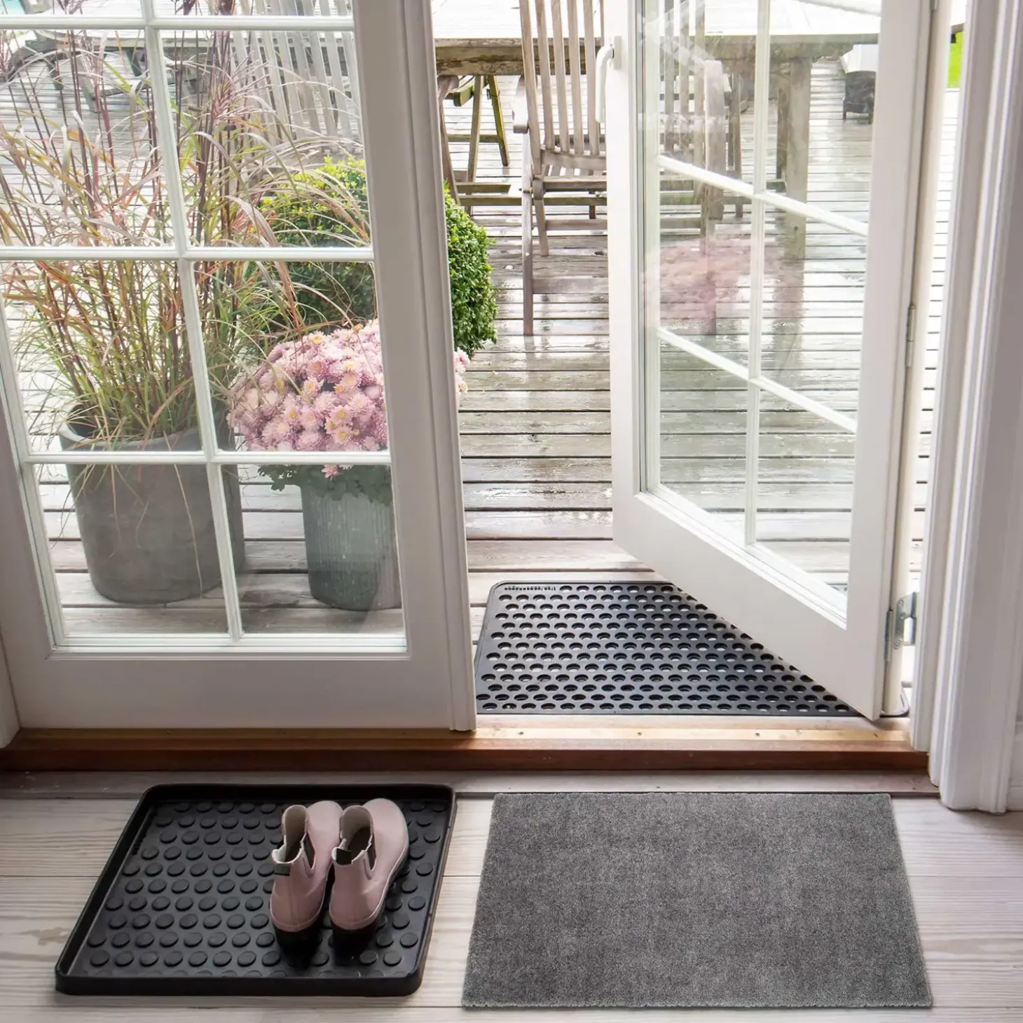 Bagsiden er en phthalatfri vinyl/PVC som medvirker til at måtterne altid ligger stabile på gulvet uden af rutsje rundt. Måtterne rengøres nemt ved støvsugning, skylning/spuling eller maskinvask ved max 30 grader. Den er meget holdbar og let at rengøre.