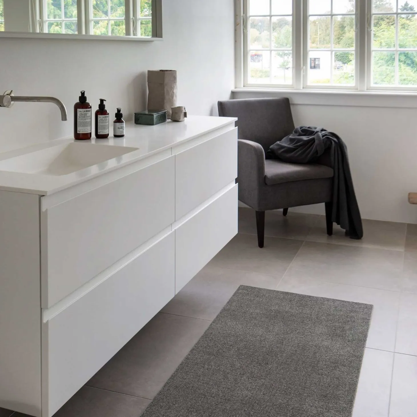 Bagsiden er en phthalatfri vinyl/PVC som medvirker til at måtterne altid ligger stabile på gulvet uden af rutsje rundt. Måtterne rengøres nemt ved støvsugning, skylning/spuling eller maskinvask ved max 30 grader. Den er meget holdbar og let at rengøre.