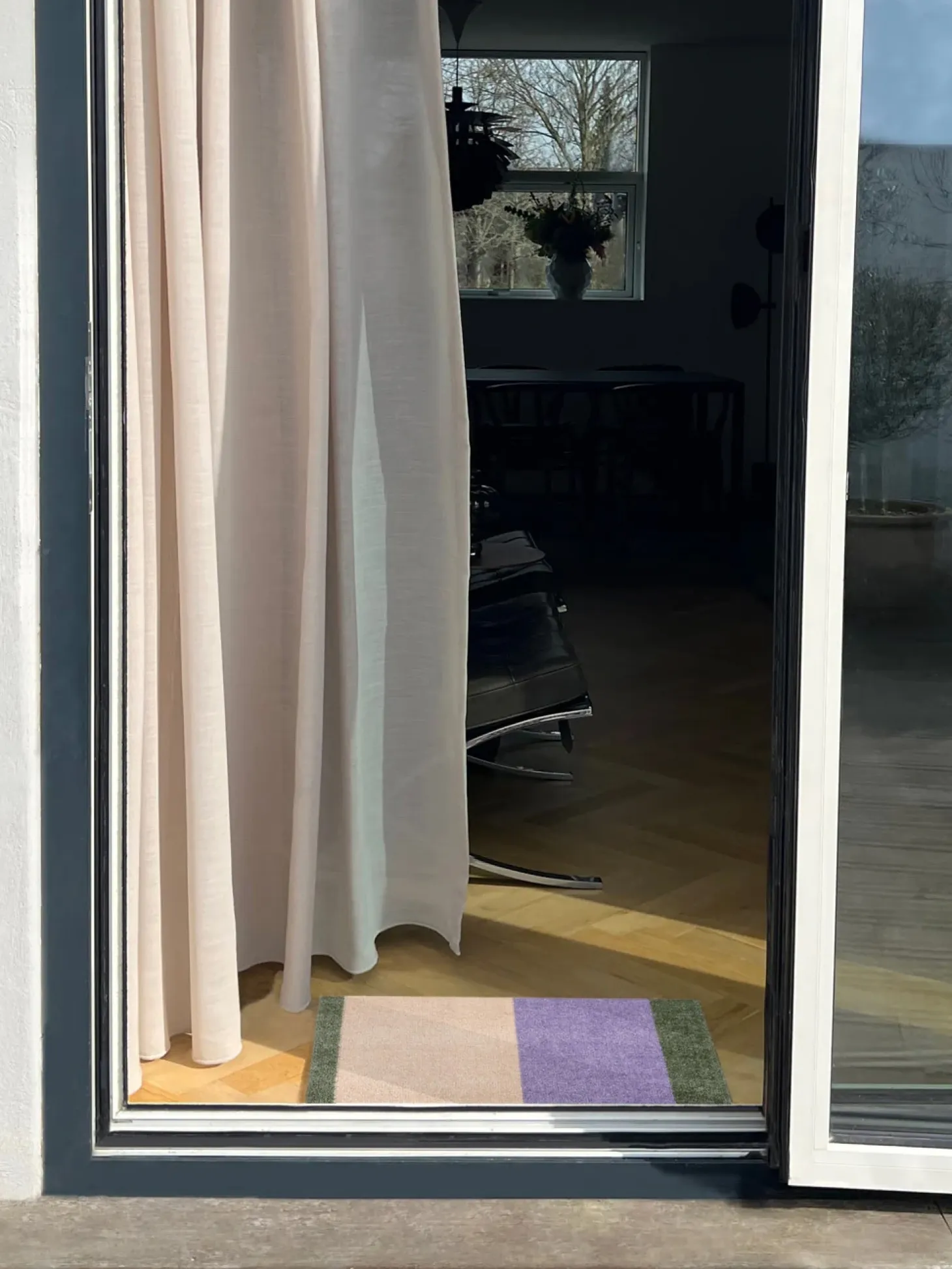 Tica Copenhagen – Smudsmåtte – Stripes Horizon – Lilla/Ivory/Grøn – 67×120 cm