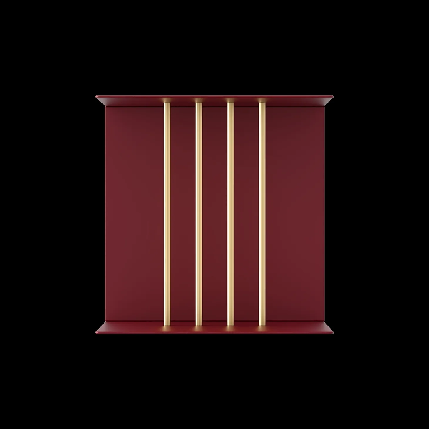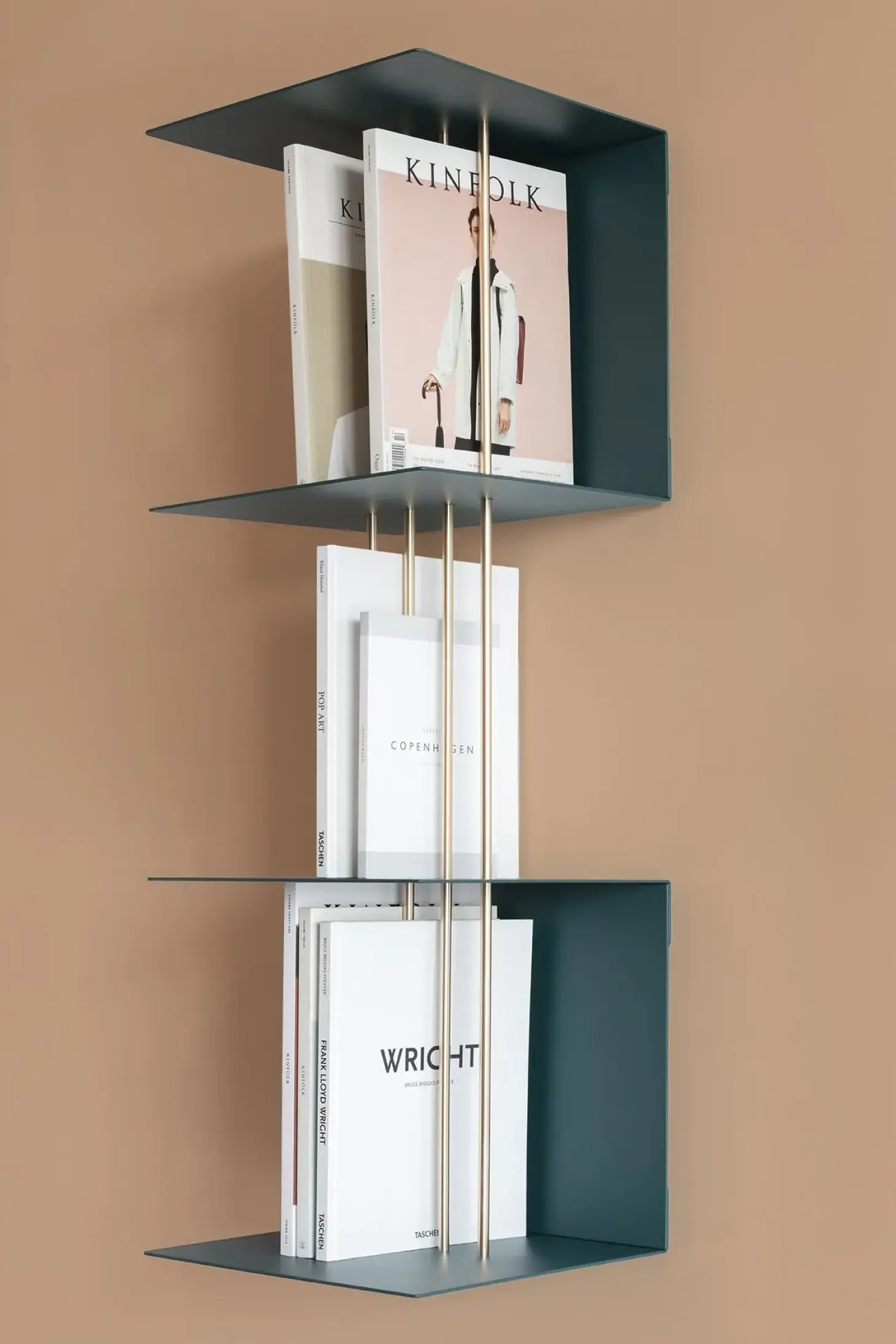 Hyldens smarte konstruktion gør det muligt at lave to hylder om til tre ved at bruge fire ekstra , der placeres mellem de to hylder.