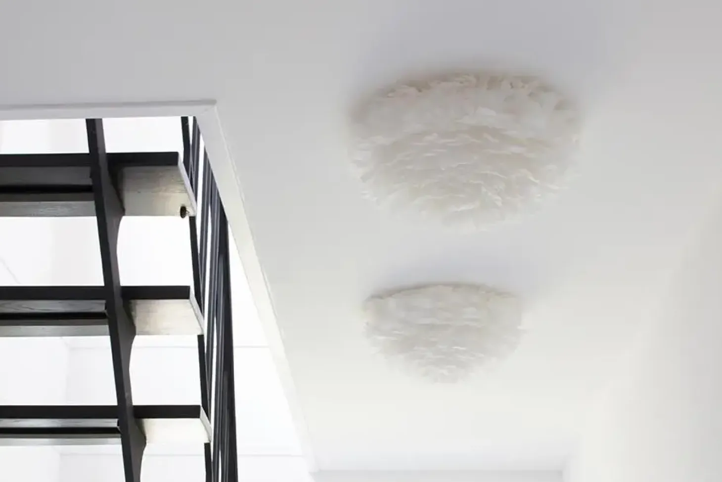 Eos Up lampe i hvid, der pynter smukt på væggen eller loftet i hjemmet. Perfekt til små rum, hvor den kan lyse flot op med sin bløde, varme belysning. En unik og håndlavet lampe, der er lavet af naturlige gåsefjer. Fjerene kan let rettes ud og støves af med en hårtørrer med afstand.