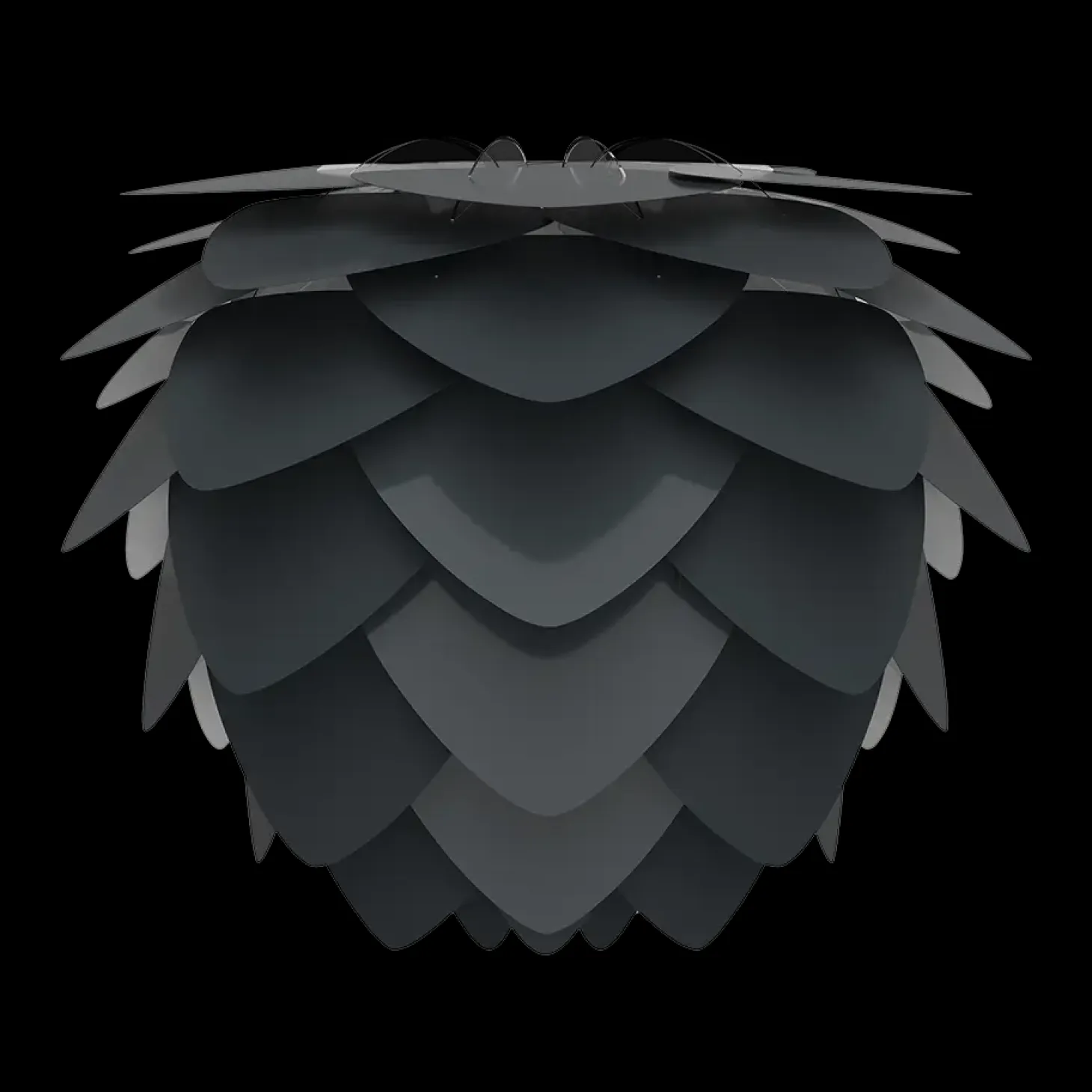 Den smukke kogle-formede Aluvia mini lampeskærm i antracit grå fra Umage er lavet med blade af aluminium, som giver lampen et let og robust udtryk på samme tid. Lampeskærmen giver dig mange muligheder i din indretning. Hæng fx lampen over dit spisebord eller i entreen – husk at tilkøbe . Eller brug den som gulvlampe med en eller som bordlampe med en .