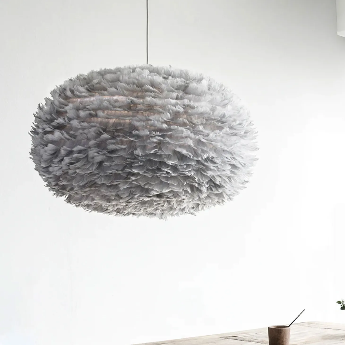 Fjerene på Eos lampen er ægte fjer og kun fra gæs slagtet i forbindelse med fødevareindustrien.