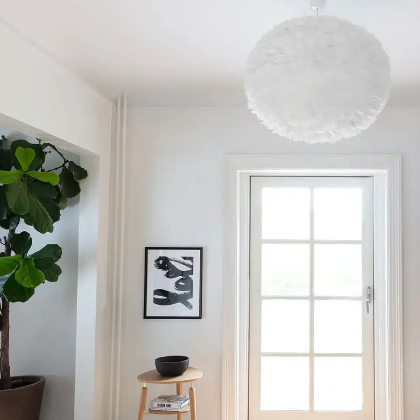 Fjerene på Eos lampen er ægte fjer og kun fra gæs der er slagtet i forbindelse med fødevareindustrien.