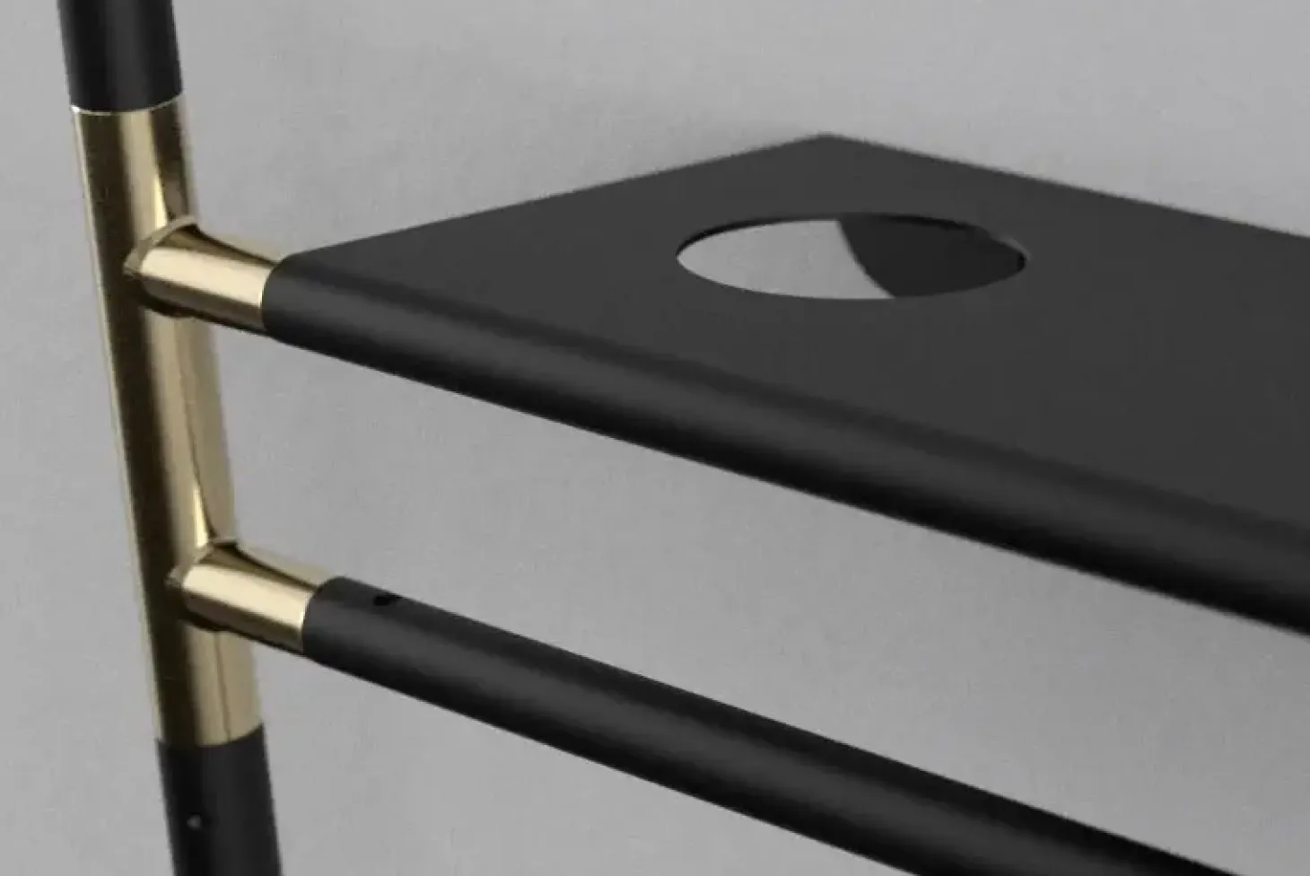 Materiale: Stål (pulverlakeret/forgyldt messing), kunstlæder (dark brown)