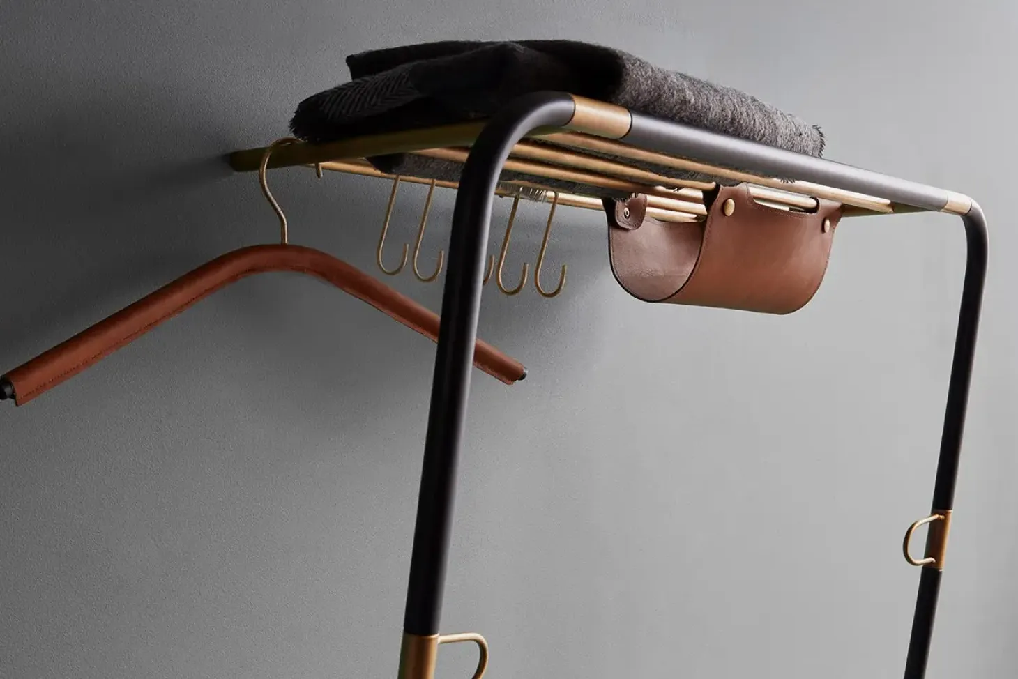 Tøjstativet Lean on me fra Umage giver plads til at opbevare alt dit overtøj, uden at bruge særlig meget plads. Lean On Me er designet til at læne i en vinkel fra væggen og tager derfor næsten ingen plads på gulvet.